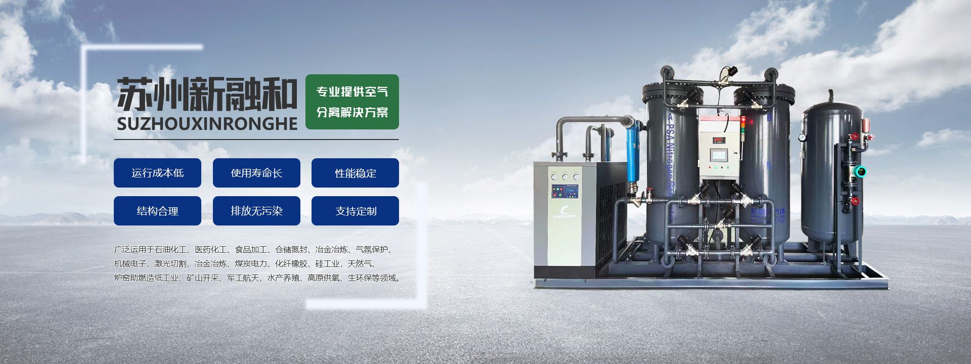 蘇州新融和氣體設(shè)備有限公司是一家集研究、設(shè)計(jì)、開(kāi)發(fā)、制造、銷(xiāo)售及租賃各類(lèi)空氣分離制氮設(shè)備,氮?dú)饧兓O(shè)備、氨分解制氫裝置、變壓吸附制氫系統(tǒng)、變壓吸附制氧系統(tǒng)、各種工業(yè)氣體純化裝置及水處理系統(tǒng)設(shè)備的專(zhuān)業(yè)制氮機(jī)廠(chǎng)家。 公司自成立以來(lái)始終秉承著:“鼎新革變,融和致遠(yuǎn)”的企業(yè)文化理念,誠(chéng)信做事,誠(chéng)實(shí)做人;并結(jié)合業(yè)內(nèi)多年從業(yè)經(jīng)驗(yàn),從客戶(hù)的角度出發(fā),換位思考,幫助客戶(hù)優(yōu)化設(shè)備配置方案,為客戶(hù)提出合理化且性?xún)r(jià)比高的設(shè)備配置建議,在滿(mǎn)足客戶(hù)工藝需求的前提下,可能的幫助客戶(hù)節(jié)能降耗。